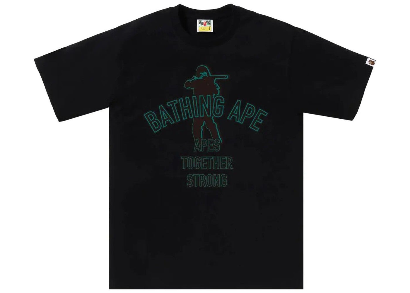 Stand out from the pack in this clean BAPE Soldier ATS tee, featuring the iconic Ape Head motif reimagined with military-inspired details. The premium cotton construction and classic black colorway make this piece a versatile addition to any streetwear rotation, while subtle BAPE branding elements maintain that coveted street cred. Perfect for those who appreciate the perfect blend of Japanese streetwear heritage and modern urban style.