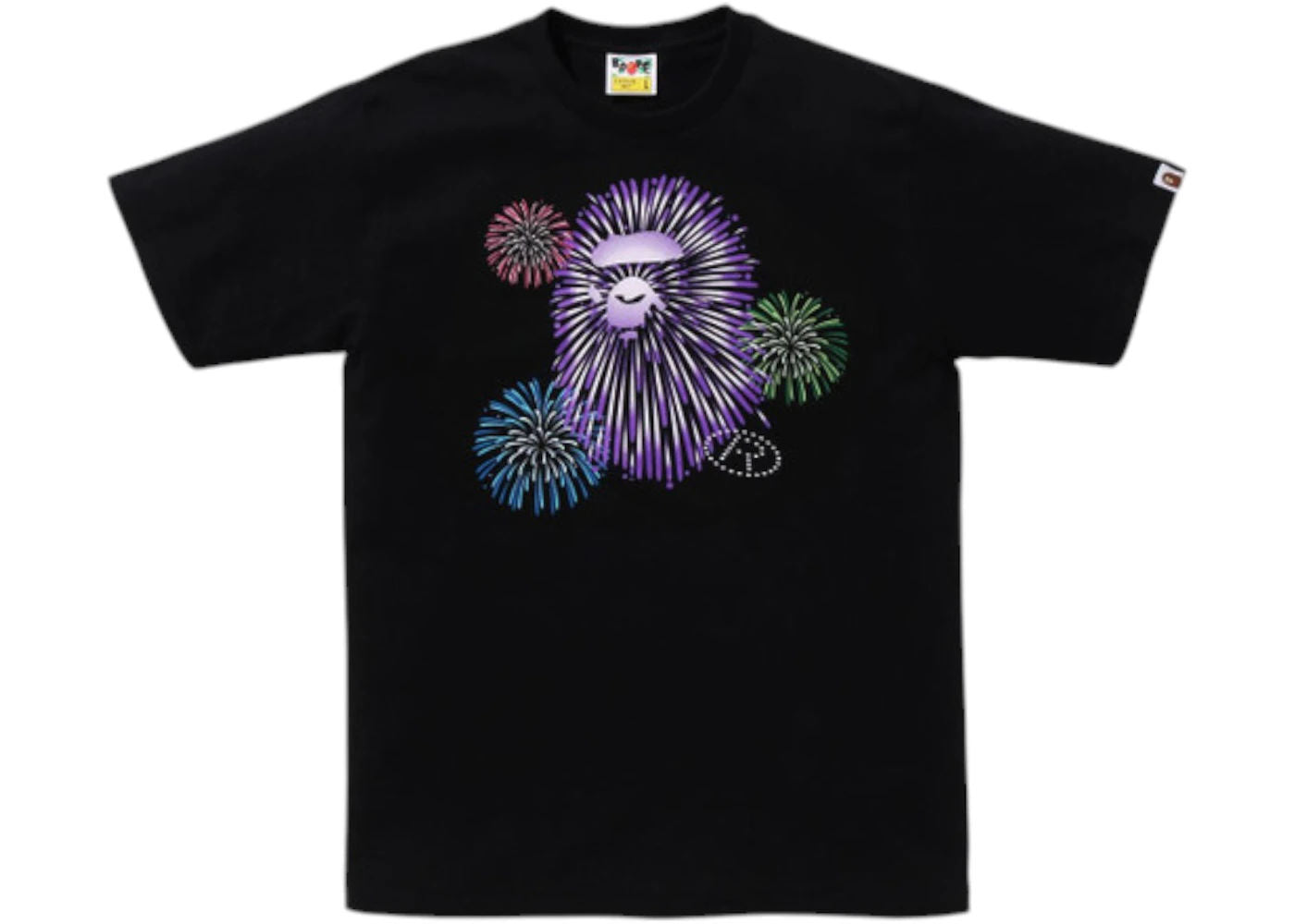 Light up your streetwear rotation with BAPE's Ape Head Firework II Tee, featuring the iconic Ape Head logo reimagined in an explosive display of color against premium black cotton. This statement piece combines BAPE's signature street aesthetic with eye-catching graphics that command attention, while maintaining the brand's legendary quality and fit that true streetwear enthusiasts have come to expect.