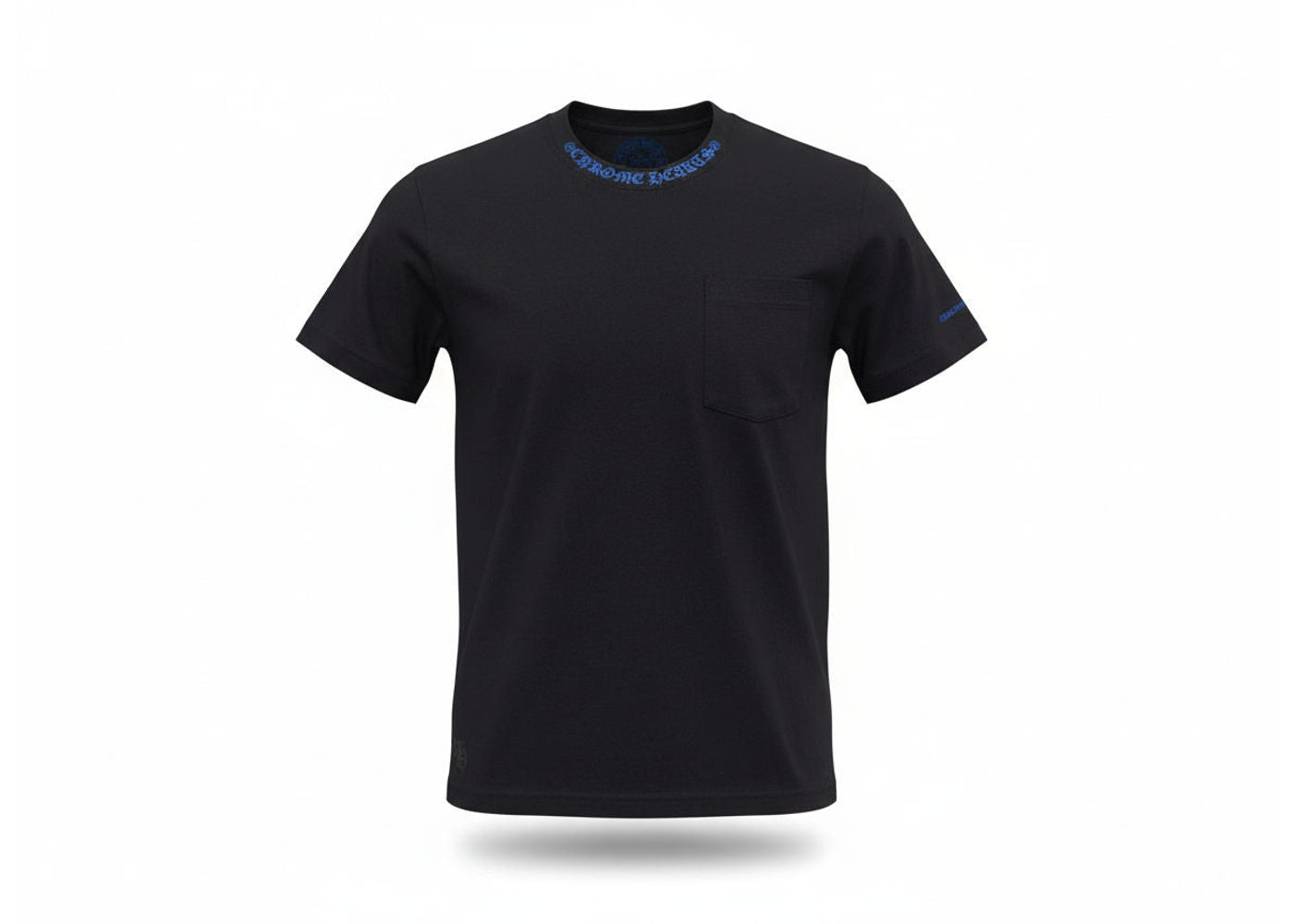 Elevate your everyday rotation with this essential Chrome Hearts tee, featuring the iconic neck logo in a striking black and blue colorway. Crafted from premium cotton with the brand's signature attention to detail, this short-sleeve piece delivers both comfort and that unmistakable LA luxury street aesthetic. The understated design makes it versatile enough to style with your favorite denim or statement pieces while still flexing that distinctive Chrome Hearts DNA.