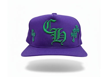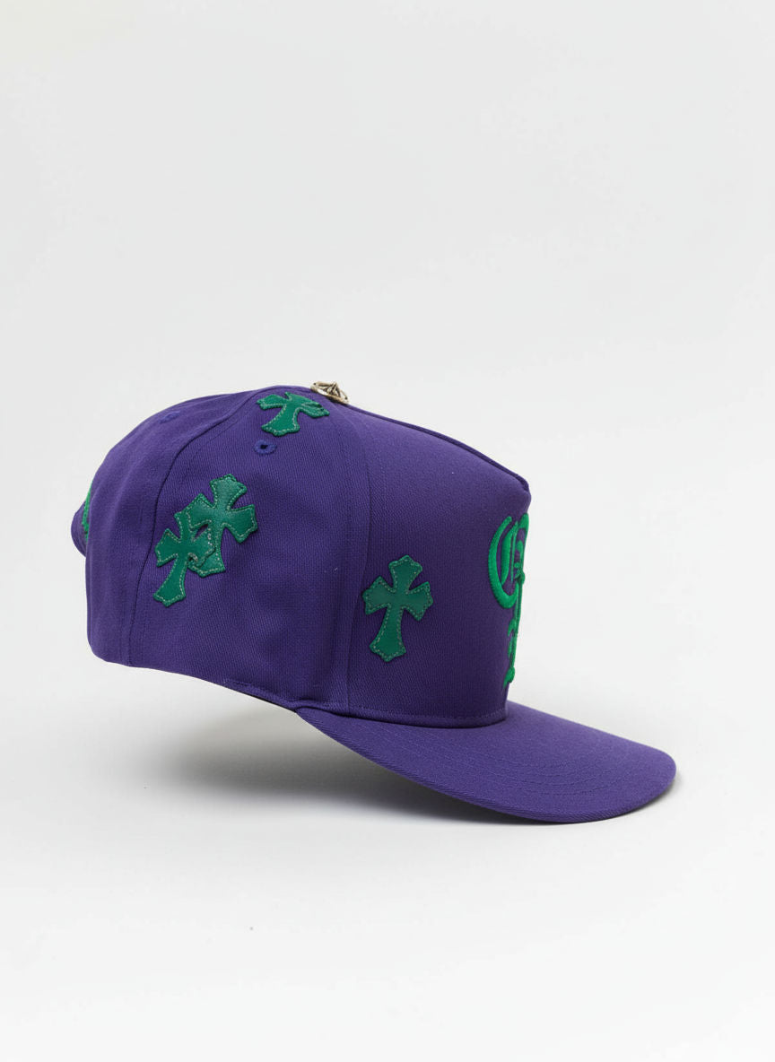 Chrome Hearts 5 Panel Cap Purple W/ Kelly Green Cross