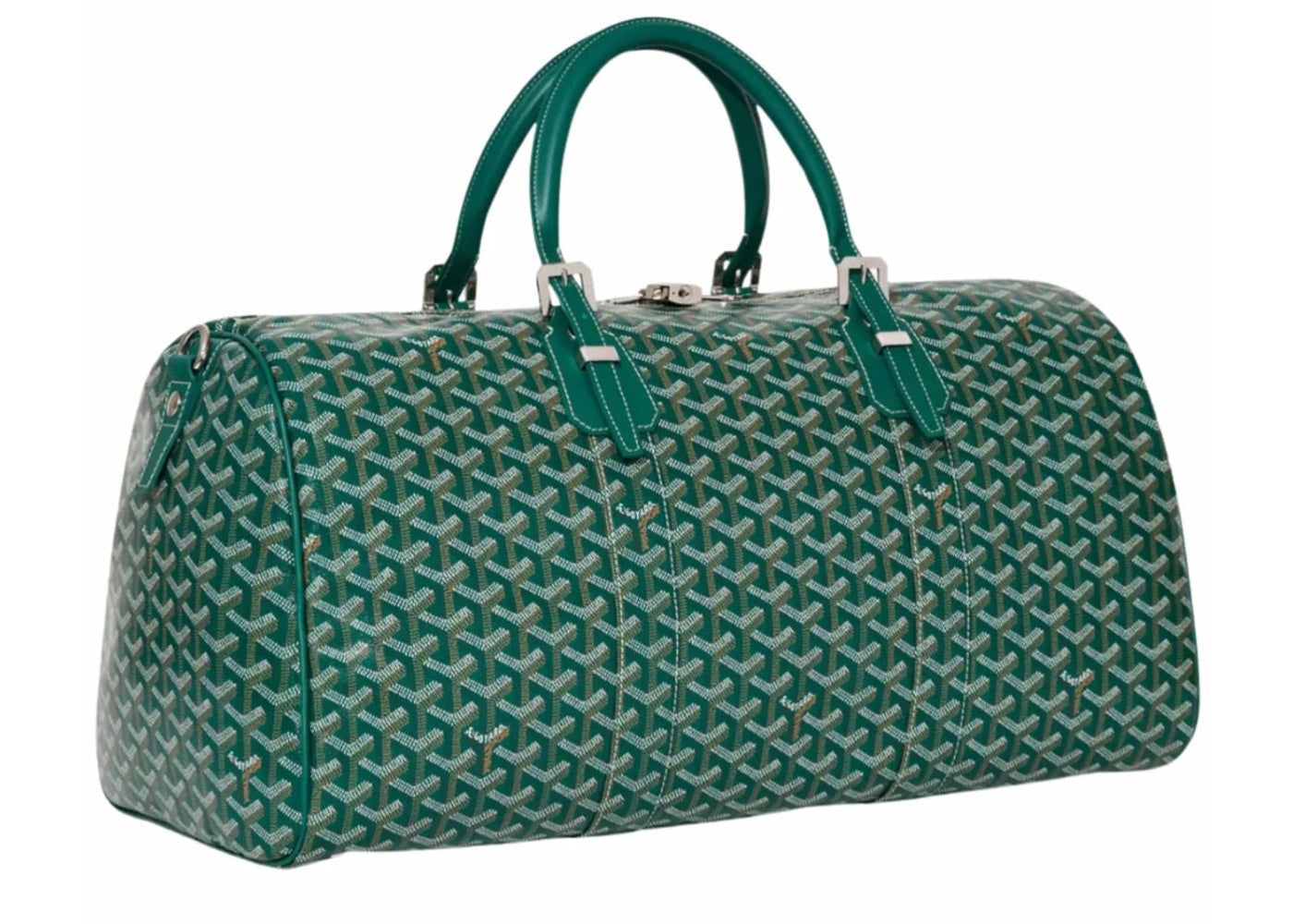 Travel in legendary style with the Goyard Boston 50 Duffle in an eye-catching green colorway. This iconic piece showcases the house's signature hand-painted Goyardine canvas, refined leather trim, and brass hardware, delivering the perfect blend of heritage craftsmanship and street credibility. The spacious 50cm design offers ample room for weekend trips while maintaining the unmistakable flex that's made Goyard a status symbol among fashion's elite.