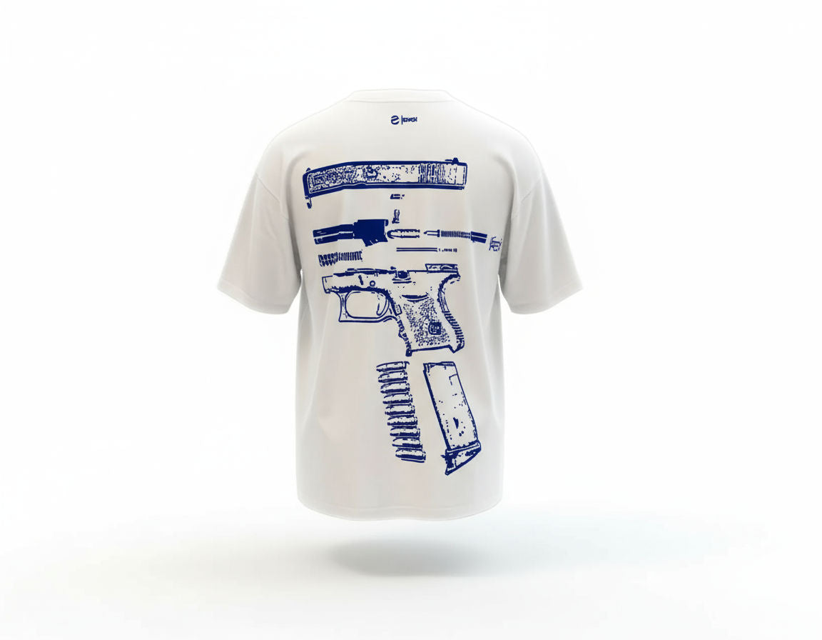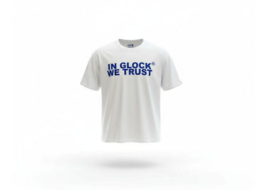 Rock your beliefs with this clean white tee featuring the bold "In Glock We Trust" graphic in striking blue print. Made from premium cotton with a classic fit that hits right at the hip, this statement piece brings street cred to any fit while keeping you comfortable. The minimalist design speaks volumes without saying too much, perfect for those who know what's up.