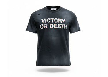 Make a statement in this hard-hitting MANI tee that combines raw street energy with clean design principles. The bold "Victory Or Death" graphic delivers an uncompromising message across the chest, while premium cotton construction ensures all-day comfort and durability. A perfect balance of attitude and wearability that pairs easily with your favorite denim or cargos.