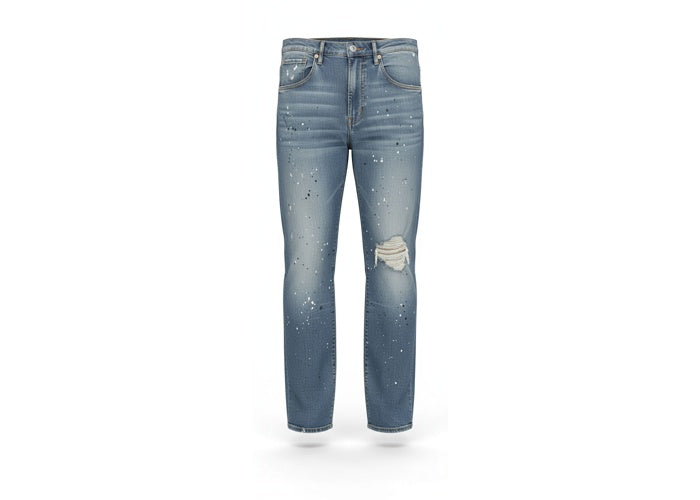 Purple Brand Slim Fit Jeans-low Rise With Slim Leg : P002-mid (Mid Indigo/Destroy Paint)