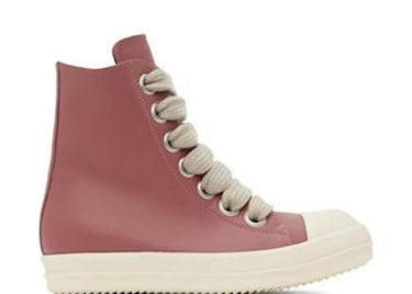 Blending avant-garde design with streetwear edge, Rick Owens' Pink Porterville Jumbolaced Sneakers make a bold statement with their exaggerated proportions and signature chunky aesthetic. These high-top sneakers feature oversized rope laces weaving through dramatic metal eyelets, while the dusty pink colorway offers an unexpected softness to the typically industrial Rick Owens DNA. The premium leather construction and rubber platform sole deliver both luxury appeal and everyday durability.