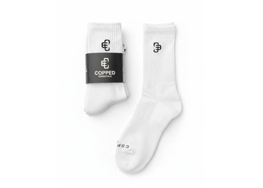 Level up your sock game with these essential Copped Crew socks, featuring a classic mid-calf fit that's perfect for both sneaker flexing and daily wear. Built with premium cotton blend and reinforced heel and toe sections, this 4-pack delivers everyday comfort in clean white and black colorways that complement any rotation. The ribbed cuff keeps your socks locked in place while the breathable design keeps your feet fresh from morning to night.