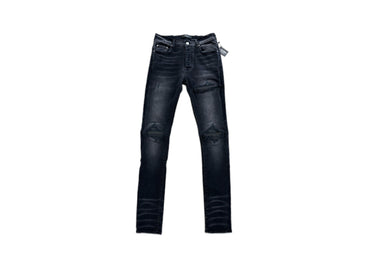 Elevate your denim game with AMIRI's signature MX1 jeans in a sleek black-on-black colorway. Crafted from premium stretch denim and featuring the brand's iconic pleated leather patches and distressed detailing, these jeans deliver the perfect balance of rock 'n' roll edge and luxury craftsmanship. The slim fit and subtle moto-inspired elements make these a versatile piece that works seamlessly with both streetwear staples and high-end fits.