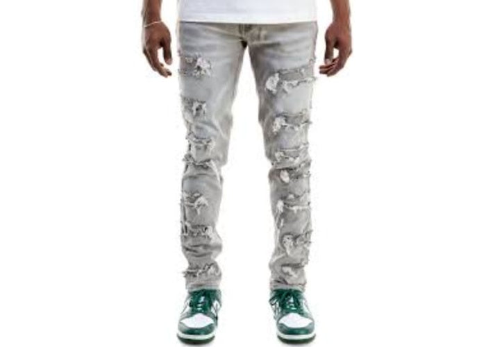 Level up your denim game with these head-turning KDNK skinny jeans in grey. Featuring unique patch detailing and a sleek tapered fit, these jeans deliver the perfect blend of streetwear edge and premium comfort. The distressed aesthetic and contemporary design make these a must-have piece for building fits that stand out from the crowd.
