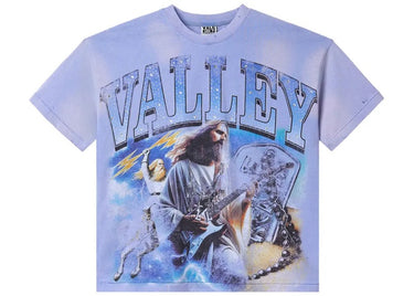 A graphic masterpiece that blends rock god energy with divine chaos. The "Holy Metal" Bling Tee by Vale Forever features a vivid airbrushed-style print of a guitar-shredding figure surrounded by lightning, angels, and heavenly relics — all beneath bold “VALLEY” lettering iced out with rhinestones. This oversized lavender tee is a headliner piece meant to elevate your fit with unapologetic attitude and cosmic flair.