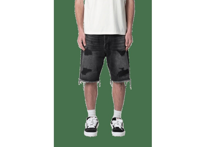 These washed black denim shorts bring the perfect vintage-inspired baggy fit with strategic distressing for an authentic lived-in look. Crafted from premium denim with just the right amount of stretch, they feature raw-edge hem detailing and classic 5-pocket styling that pairs effortlessly with your favorite kicks and oversized tees. The relaxed silhouette and mid-thigh length hit that sweet spot between streetwear comfort and laid-back style.